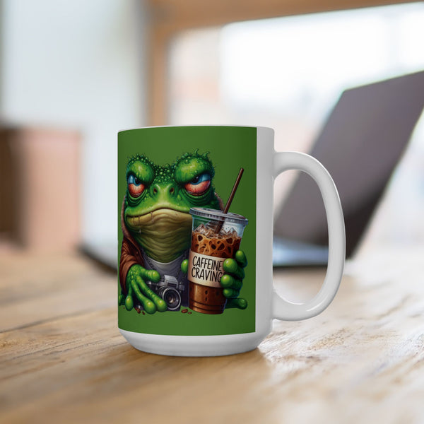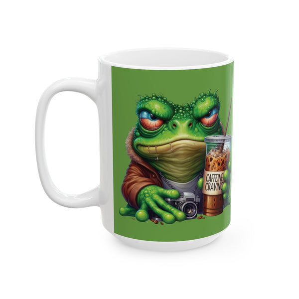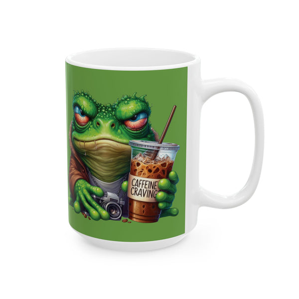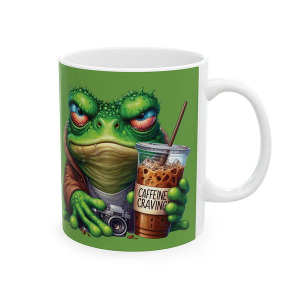 Show off your caffeine cravings in style! This Funny Grumpy Frog Coffee Mug features a hilariously tired-looking frog clutching an iced coffee labeled “Caffeine Craving.” It’s the perfect pick for coffee lovers who need their brew before they can function.