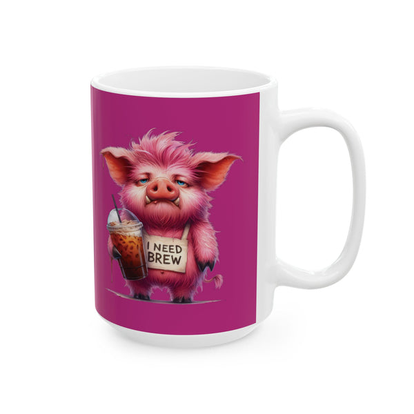The Grumpy Pig Coffee Mug Funny Cute Farm Animal Cup | I Need Brew Iced Coffee Gift destined to impress, and priced at only $14.95.