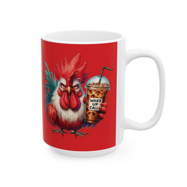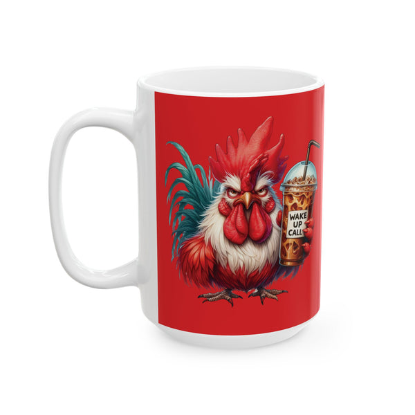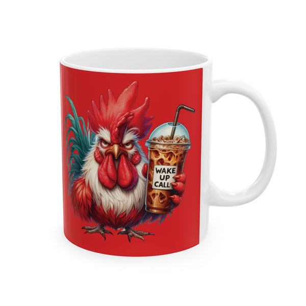Start your day with a bold wake-up call! This Funny Grumpy Rooster Coffee Mug features a cranky rooster clutching an iced coffee labeled “Wake Up Call.” Perfect for anyone who needs their caffeine before they can crow, this mug adds humor and attitude to every morning sip.