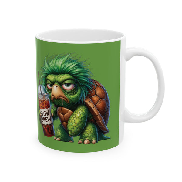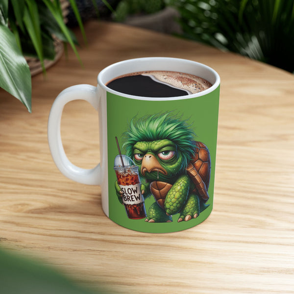 Start your day at your own pace with this hilarious grumpy turtle mug — because good things (and coffee) take time!