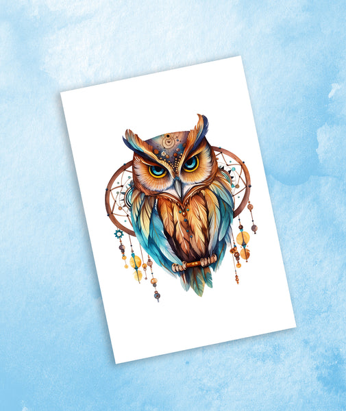 Add a touch of whimsy to your notes with this charming set of 10 handmade notecards featuring colorful boho owls. Perfect for all ages and occasions, these folded blank cards give you the freedom to express yourself. Each card showcases a unique watercolor owl illustration in a modern bohemian style.
