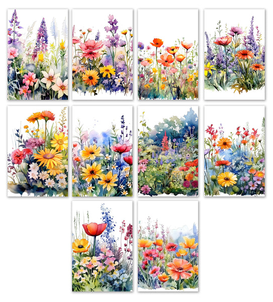 10 Handmade Watercolor Wildflowers – Blank Inside – Folded 4x6 Every Occasion Cards with White Envelopes