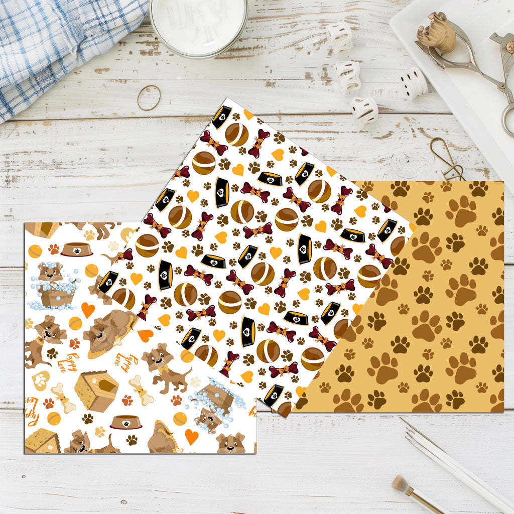 Designs include cute dog bones, paw prints, puppies, and bowls