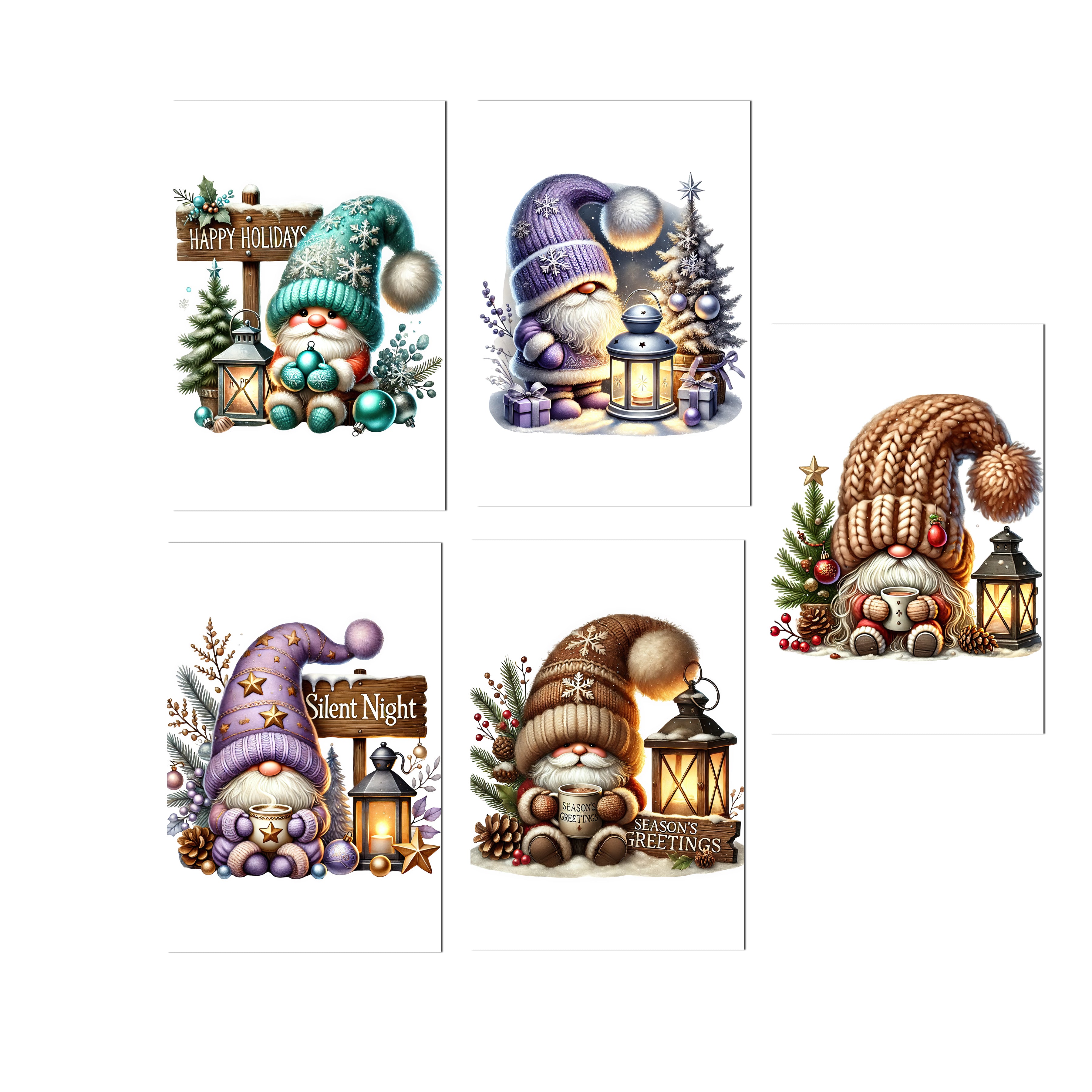 10 Handmade Christmas Cards Notecards 4x6 with Envelopes Blank Folded Gnomes