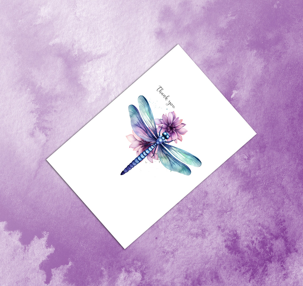 6 Handmade Thank You Notecards 4x6 with Envelopes Blank Folded Dragonflies