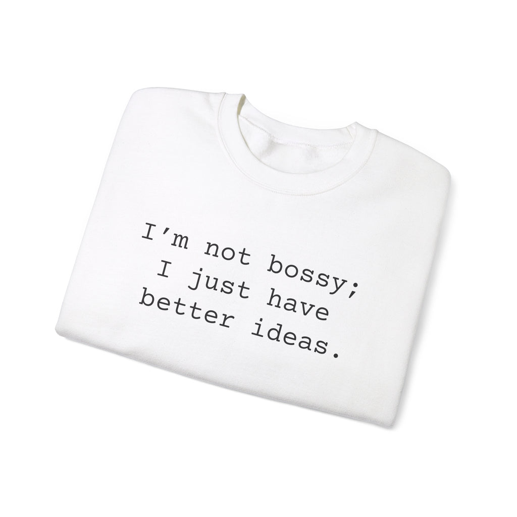 Take control with this soft and comfy sweatshirt. Whether you're lounging at home or heading to the office on a casual day, this shirt boldly declares that you're not bossy - you just have better ideas that others should listen to. Get your hands on this sarcastic and humorous sweatshirt to let everyone know who's really in charge!