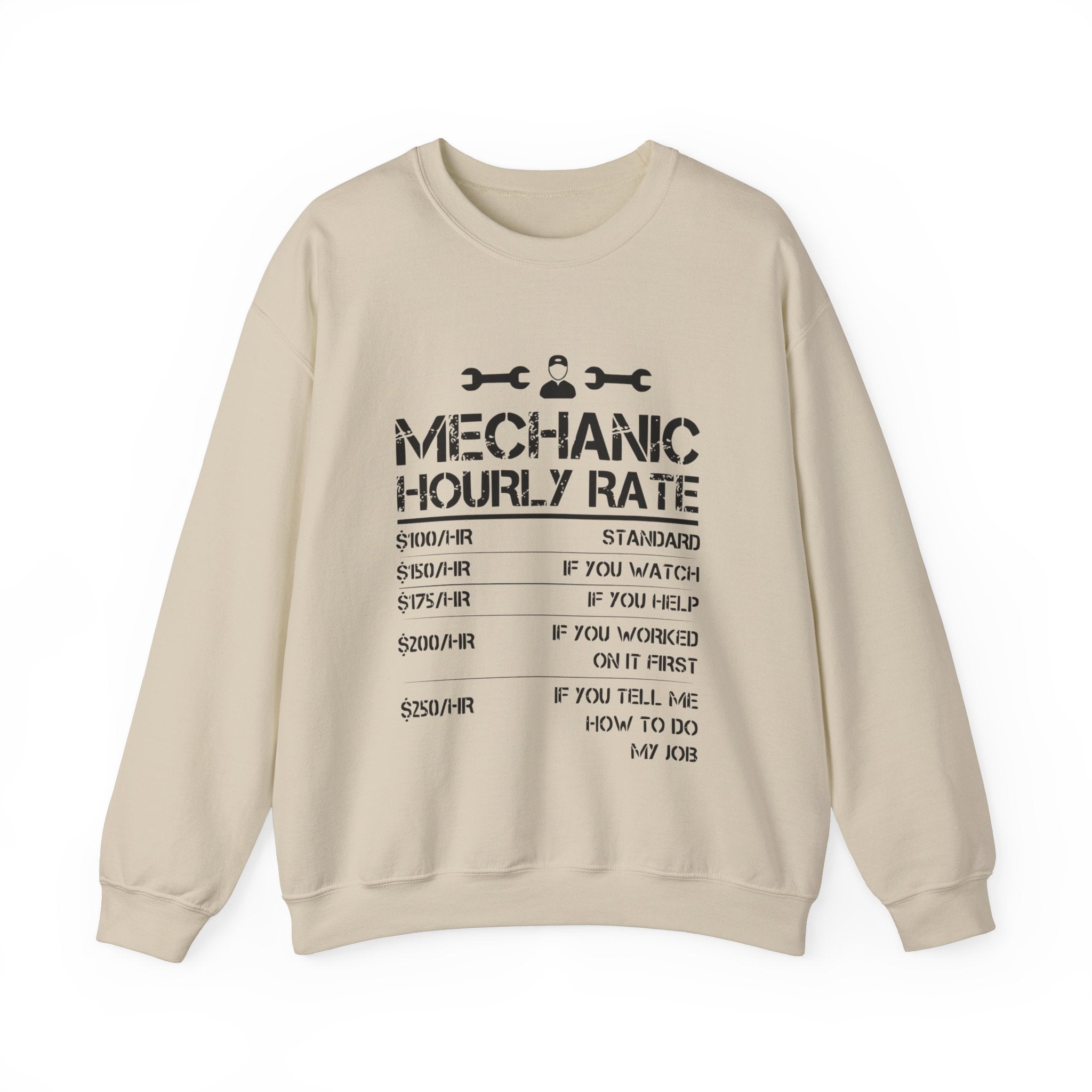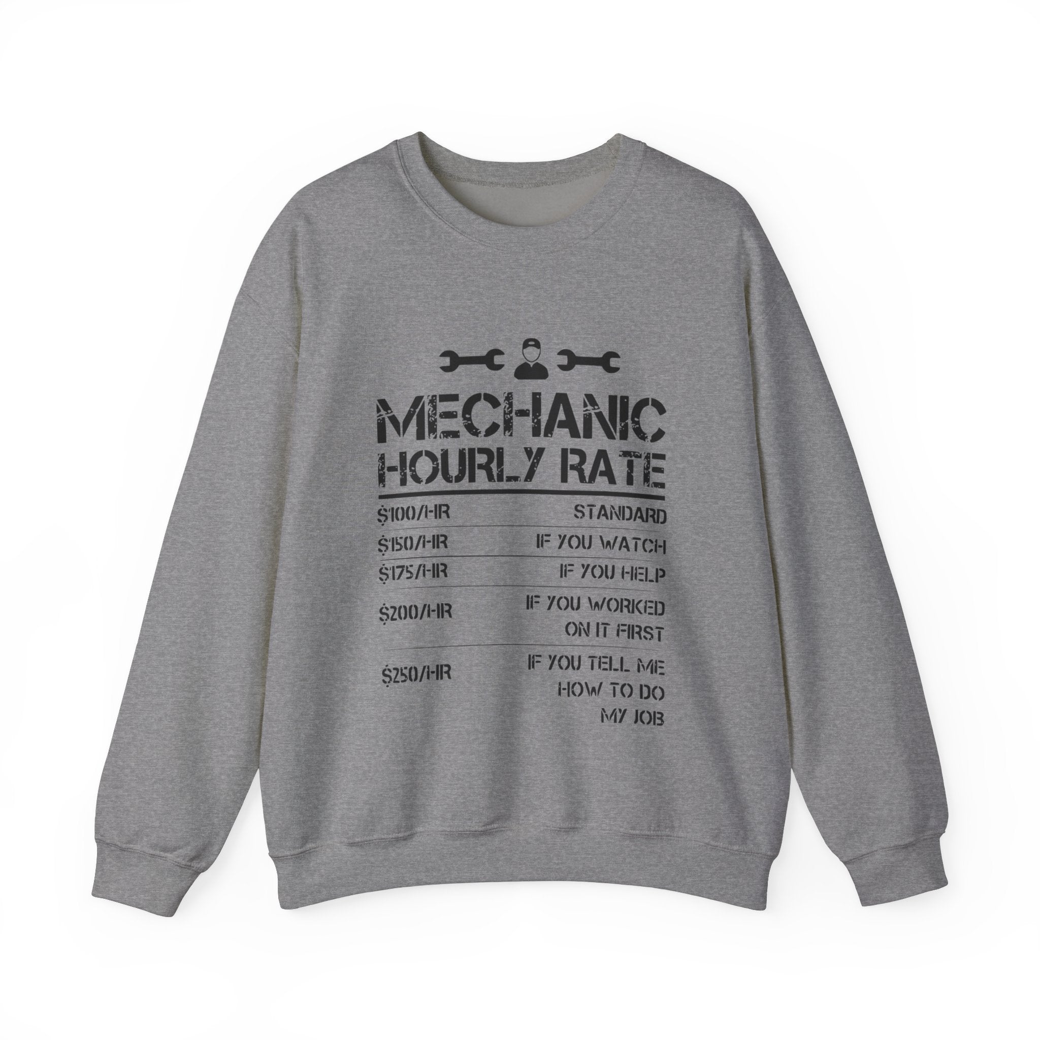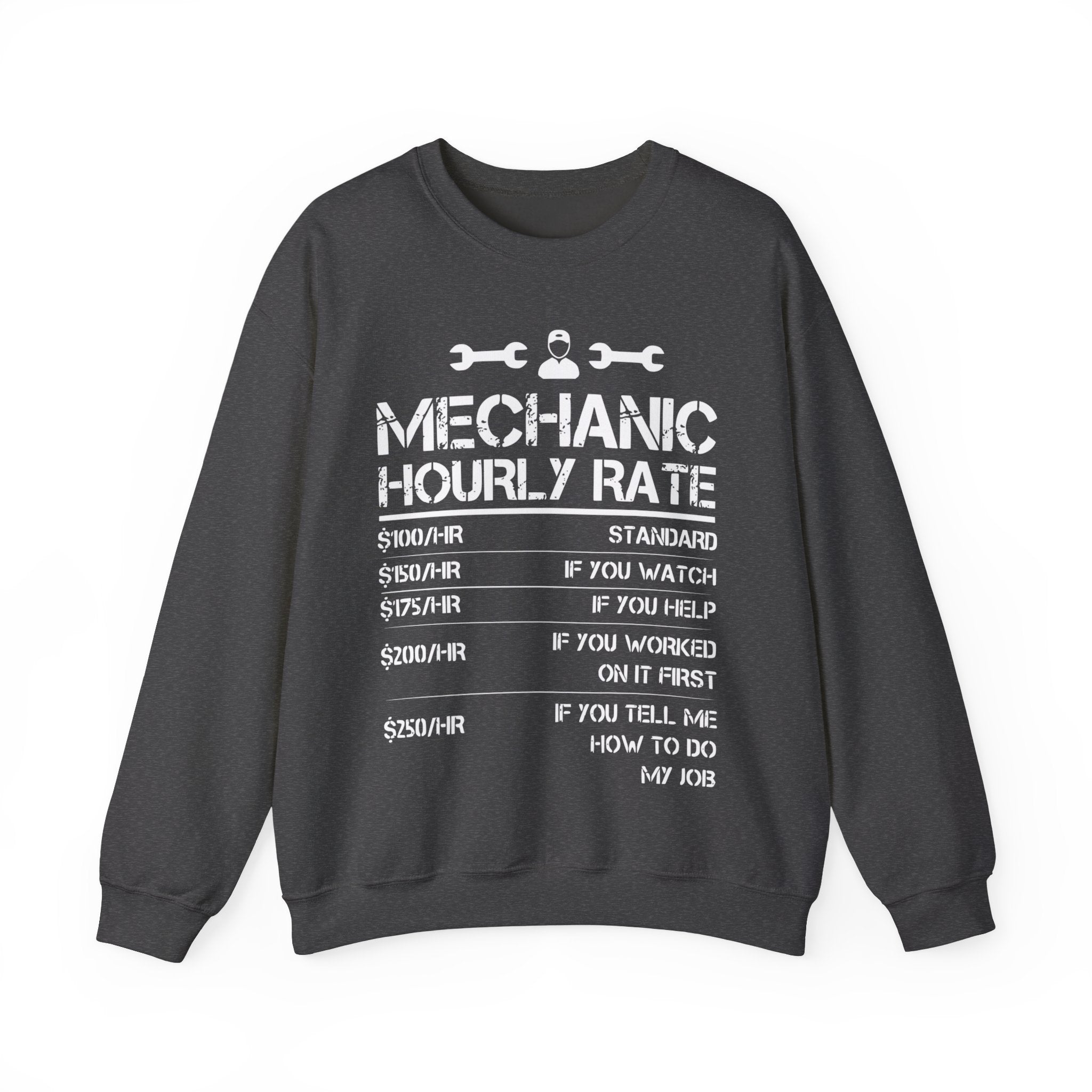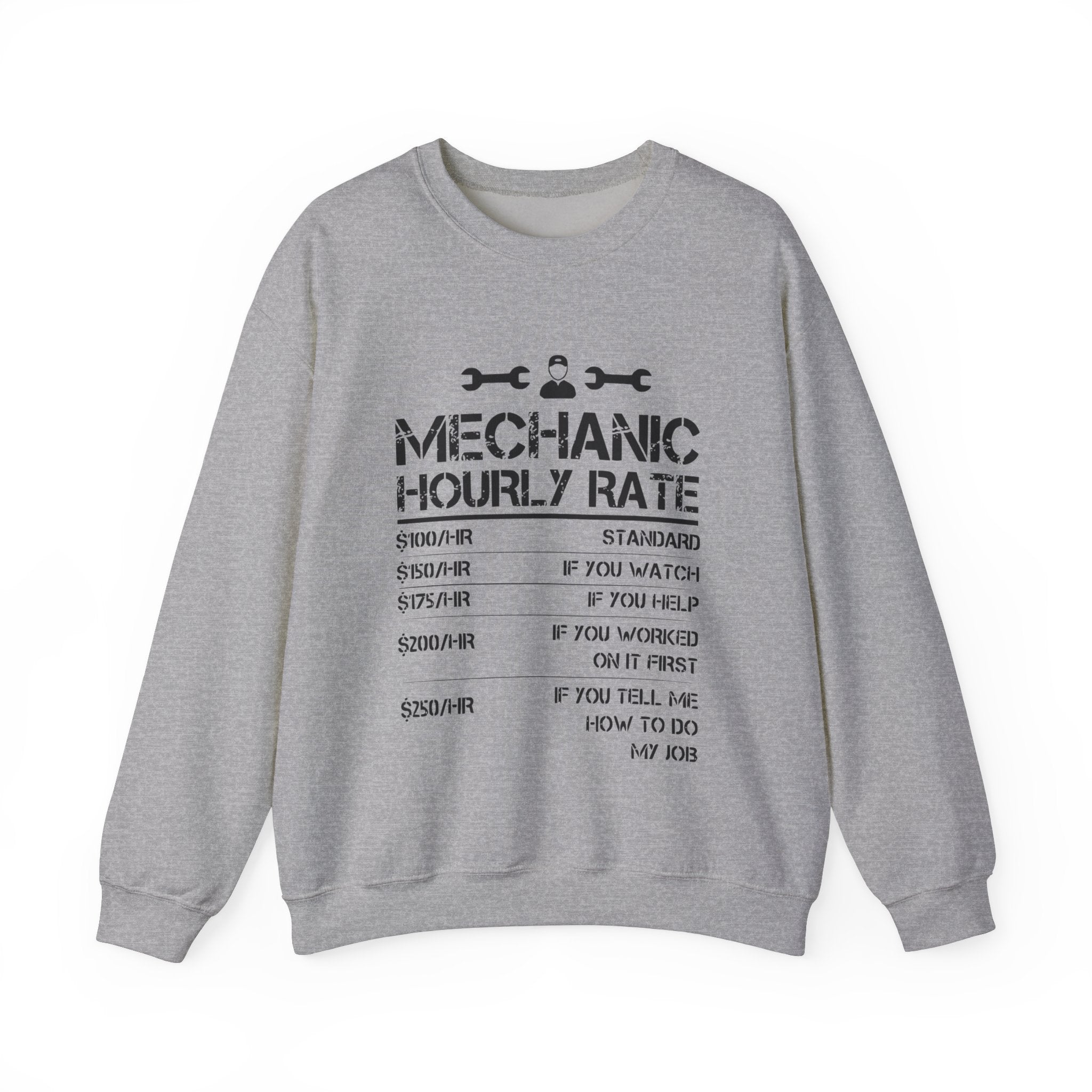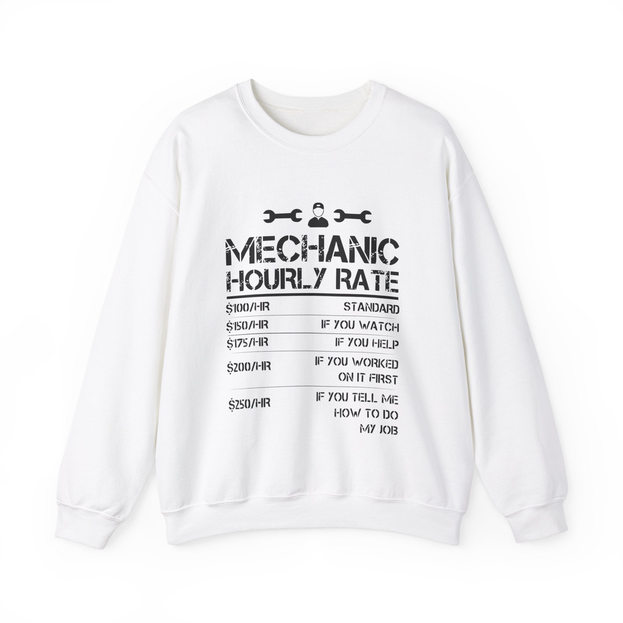 Step up your gift-giving game with our Funny Mechanic List of Rates Sweatshirt—a perfect blend of humor, comfort, and style. Tailor-made for mechanics and car shop technicians, this Unisex Heavy Blend™ Crewneck Sweatshirt is not just a piece of clothing; it’s a statement and a burst of laughter rolled into one. Crafted from a cozy blend of 50% cotton and 50% polyester, this sweatshirt is designed to keep you warm and comfortable through the colder months, making it an ideal choice for both work and leisure.