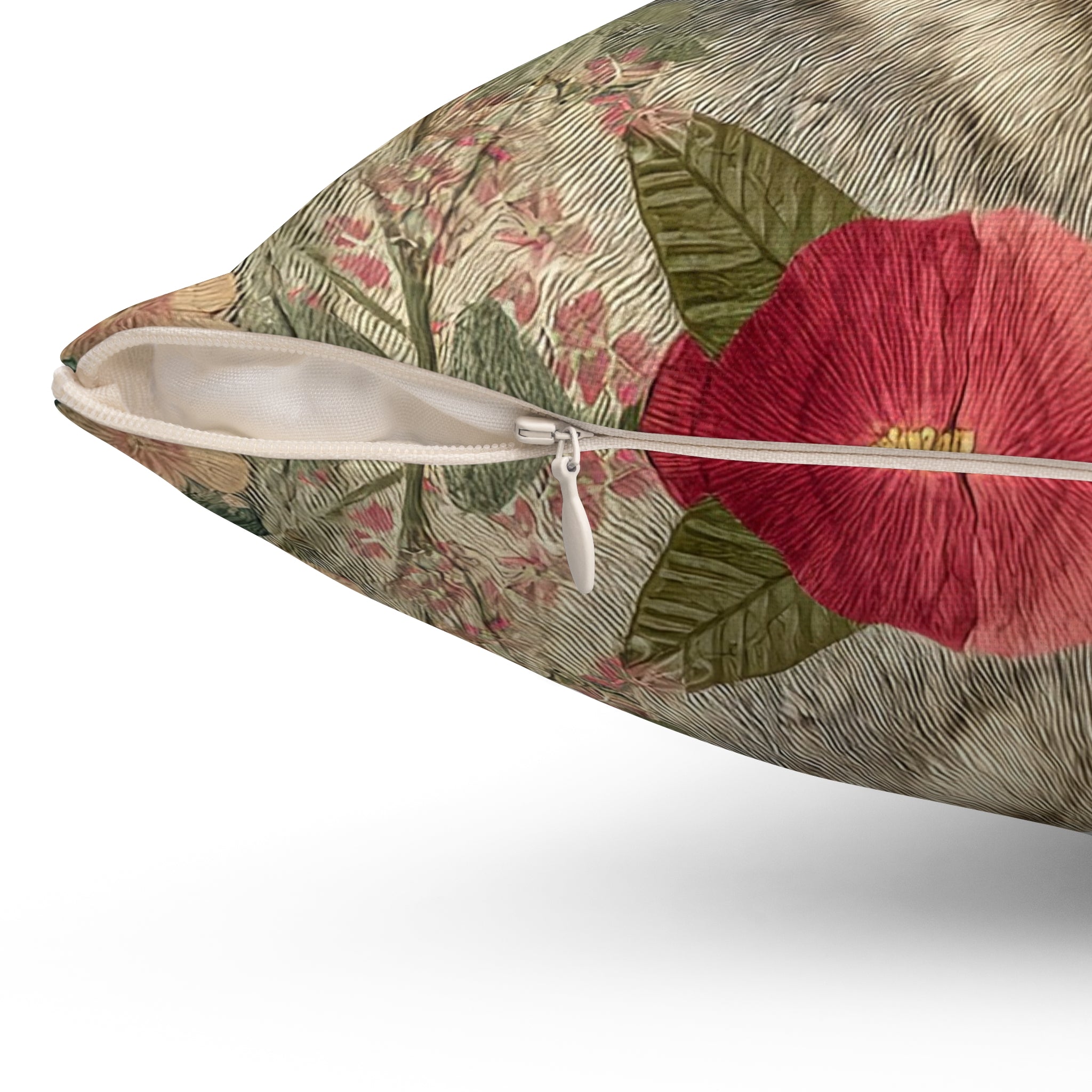 Victorian Wolves Square Decorative Throw Pillow, Red Flowers Cushion Cover,